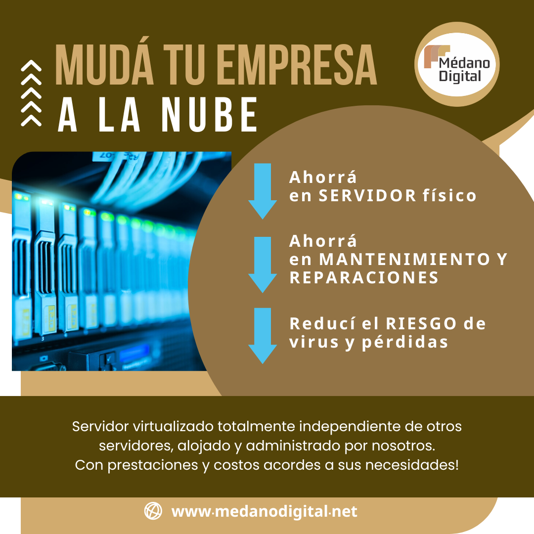 Te permite ahorrar en un servidor físico. Es decir, en vez de tener que invertir en equipamiento de tecnología informática puesto en un equipo físico, destinar recursos físicos para su funcionamiento (lugar, instalaciones seguras acorde, etc). Podés evitar gastar en servicios de mantenimiento y reparaciones. Recursos que podrás poner al servicio de tu negocio.